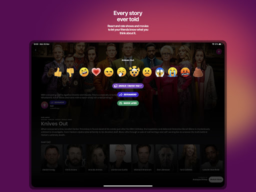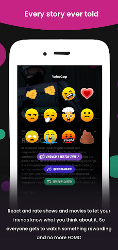 React and rate shows and movies to let your friends know what you think about it. So everyone gets to watch something rewarding and no more FOMO