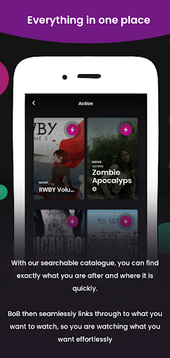 With our searchable catalogue, you can find exactly what you are after and where it is quickly. BoB then seamlessly links through to what you want to watch, so you are watching what you want effortlessly
