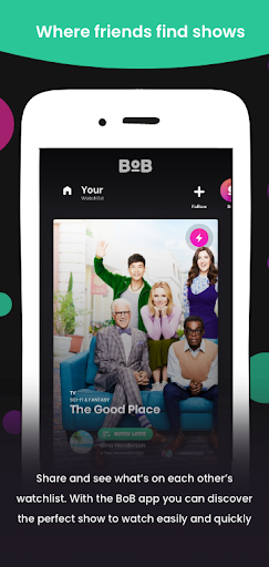 Share and see what’s on each other’s watchlist. With the BoB you can discover the perfect show to watch easily and quickly