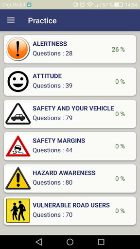 Our advice for a better and faster learning is to first go through the Road Legislation, then the Practice Environment and the MOCK Test.