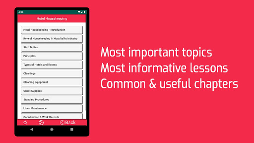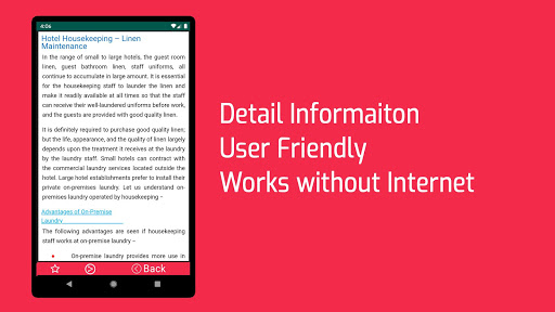Hotel housekeeping management books app will provide you lessons about agents, guest, supplies and management. So now you can carry your hotel housekeeping course anywhere by this app and can learn anytime.