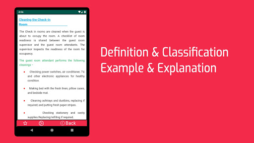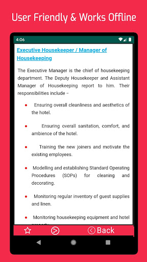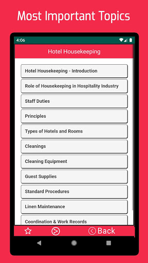 Hotel Housekeeping is an educational application. If you are looking for hotel housekeeping book so you are in a right place. This learn Hotel Housekeeping app will help you to learn about cleanings, standard operations and procedures.