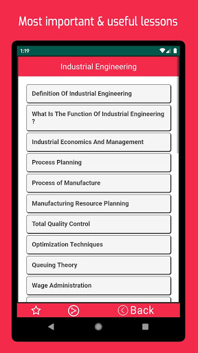 Industrial Engineering free is an educational application. If you are looking for Industrial Engineering app so you are in a right place. This application is user friendly & works offline. Industrial Engineering app will provide you most important & informative lessons. This Industrial Engineering app will give you definition & classification. You will get equations & examples in detail.