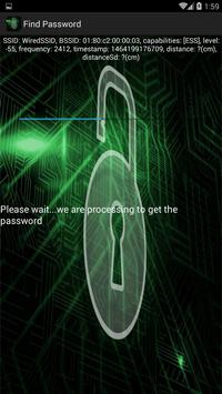 This application will show you all available wifi networks and will click on it, a real like processing will start and at the end a password will be shown.