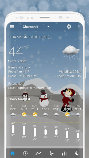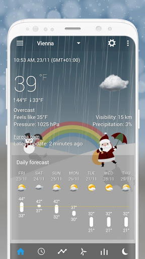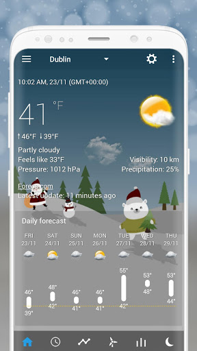A set of Christmas weather forecast backgrounds for Transparent clock & weather using use a minimal (material-like) design. The pack includes different backgrounds for different weather conditions including clear, cloudy, rainy, thunderstorms, show, flurries and more.