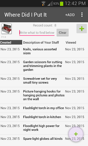 Whenever you want to remember where some of your stuff is, add a new record into this app, take two photos of it, and write a brief description of it. It really is like being organized even if you're not organized!