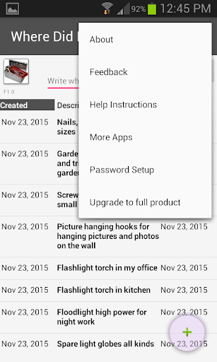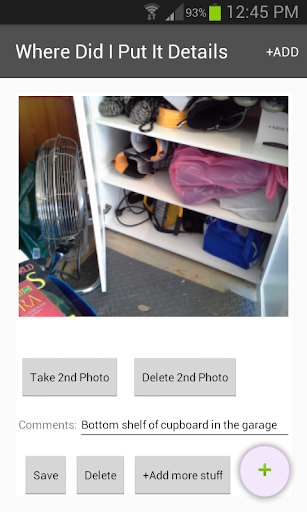 Find your stuff around your home, your garage, your shed, your work place, your car, anywhere, using keyword searches and photos.