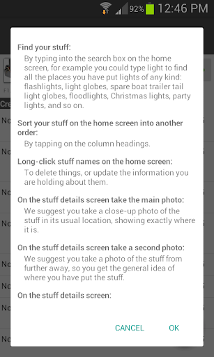 * Go through all those cupboards and rooms and sheds that you have no idea what is in them, and just add new entries into this app and take photos of your stuff.