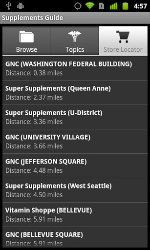 * Locate nearby supplement stores (currently US only).