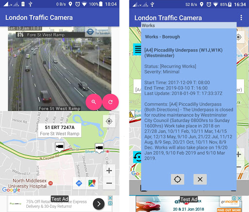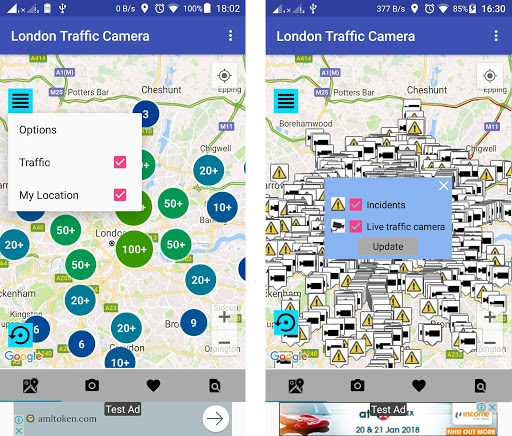 It shows all live traffic cameras and incidents in the London with a user-friendly interface.