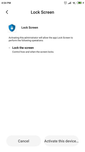 ✓ This app uses the Device Administrator permission to lock your phone's screen.