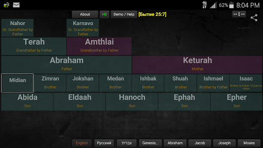 This app provides you with the ability to quickly see the family relations of those characters, whose relations were described in the Torah.