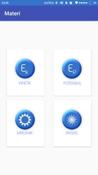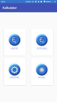 * Energi Kalkulator : energi kinetik, energi potensial, energi mekanik, dan energi panas.