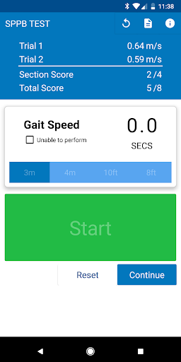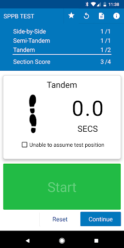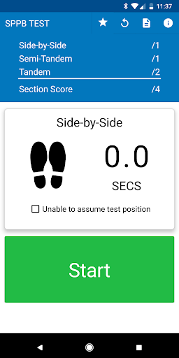 The SPPB Test app walks you through administering the SPPB following protocol and automatically doing necessary calculations.