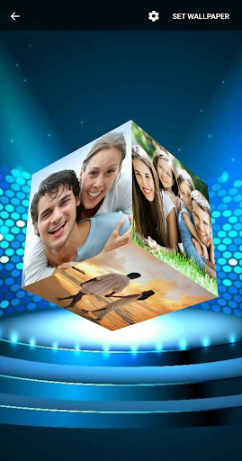 3D Gallery Live Wallpaper app features a rotating 3D photo cube showing pictures and photos from your albums. Make Live Photo Gallery, Select your favorite pictures from your gallery/Album to display in cube. This app contains amazing and soothing background images. Add images of yours and your loved ones.