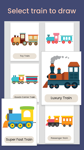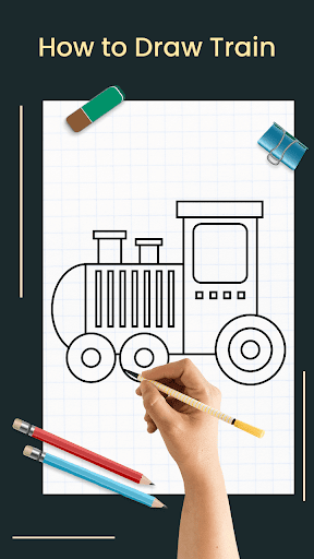 This app has easy drawing lessons and will teach you how to draw trains step by step. And if you follow our drawing lessons and draw along with it, then you will be able to make train drawings with ease.