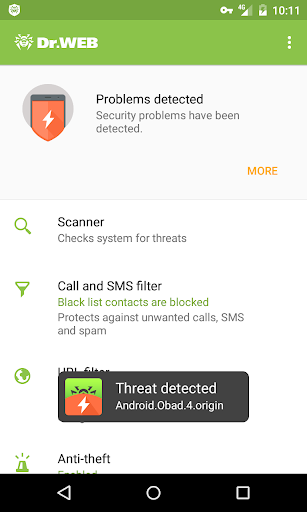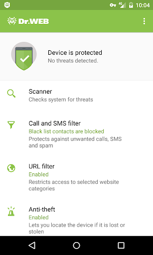 Dr.Web Security Space includes only those Dr.Web protection components that comply with Google's policy at any point in time; Dr.Web Security Space can be changed by the rights holder when this policy changes, without any obligation to users. Dr.Web Security Space for Android with the complete set of components, including the Call and SMS Filter and the Anti-theft, is available on the rights holder's site.