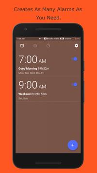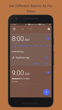 If you want to wake up at the same time every day, weekends or just a few days a week, you can easily select which days in alarm clock.