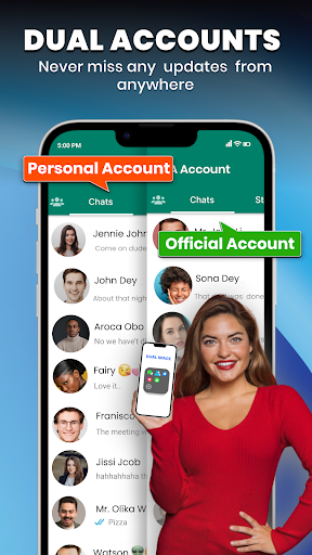 Parallel accounts: You can stay logged in simultaneously with parallel accounts of work life & personal life. Quick Switch you can quickly switch between social networking apps & do multi chat at one time.