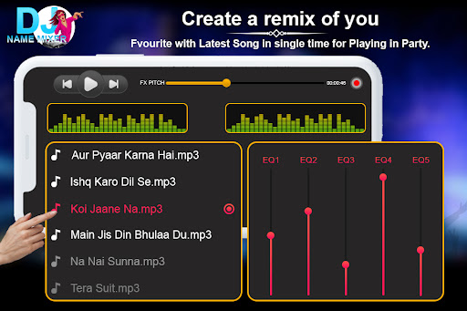 In this DJ Name Mixer app you can add any of your favourite songs and can add the DJ effect in. Like Same, You can also add text with your audio, and you can also record the mp3 sound from this Mobile DJ mixer.