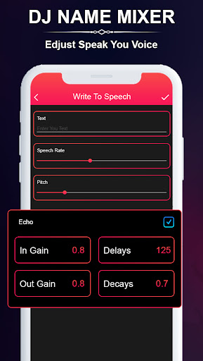 There is a special function given in DJ mixer is that, in text and in recorded sound you can also add effects if you want. You can also adjust the Echo voice, Pitch and Sound. After mixing your music you can set them as your ringtone and as notification tone also.