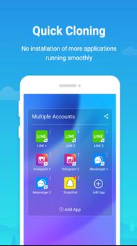 Dual Space - Multiple Accounts, Double App is the latest technology that can clone apps. We don't install more apps on your phone, so your phone works great!