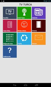 Turkish: Windows Phone marketin 1 numarali Tv uygulamasi artik Android kullanicilari icin kullanima hazir! Metro style arayuzu, ve kolay kullanimi ile Tv Turca sizlere Türkiye'nin en çok izlenen kanallarına telefonunuzdan ulaşma imkanı sunuyor. Bununla birlikte en güncel ve popüler videoları seyredebilir, kanalların yayın akışlarini takip edebilir ve sinema bölümünü ziyaret edebilirsiniz. İyi seyirler!