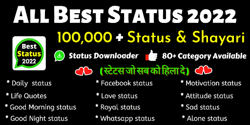 After Our Collection of Hindi Status 2022 & All Shayari in hindi , Today We are going to Share the Collection of Best Status: with You. Whatsapp is an Instant Chatting APP that Allows Users to Send & Receive Messages with a Data Plan. New Status 2022 Mostly Works with All Platforms like iOS, Android, BlackBerry, Windows & etc. Whatsapp has one of the Most Amazing Features Called Best Status . By Your Attitude status in hindi , You can Make Someone Smile or Express Your Feeling & Love by Thoughts. So, Today Here We are going to Share Best Whatsapp Status by Which You can Express Your Feeling & Love to Others. We are Daily Updating this Collection of Best Status, So You can Find Best Status Collection Every day.