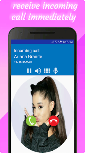 Ariana Grande Call You: Fake Video Call and Wallpaper app to accompany your days in leisure time. when you feel lonely and boring then entertain yourself with fake calls from your idol. Get and download this application for free. You will feel how close you are to your idol. Get Voice Call Prank with Ariana Grande, Get Video Call Prank with Ariana Grande, Get Best Song Ariana Grande, Get Best Wallpaper Ariana Grande HD