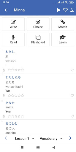- Learn vocabulary, grammar, kanji quickly and easily: Flashcard, Choice, Write, Match...