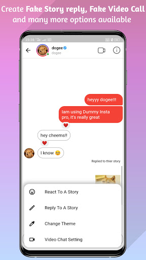 DISCLAIMER: This app is intended for entertainment purposes only and IS NOT affiliated with INSTAGRAM or any other messaging app in any way. This app does not try to compete with or replace the original.We will not be responsible for any fake screenshot or fake screen recording, or any action you perform using this App