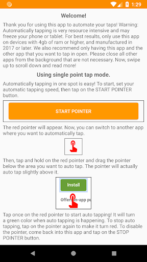 HabiTap is an automatic clicker (auto clicker) that can tap a point on your screen repeatedly, designed for people suffering from disabilities such as carpal tunnel syndrome and partial paralysis of the hand and arm where repeated tapping on the screen is necessary and difficult to accomplish. Features: