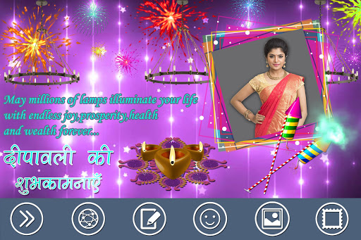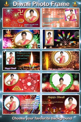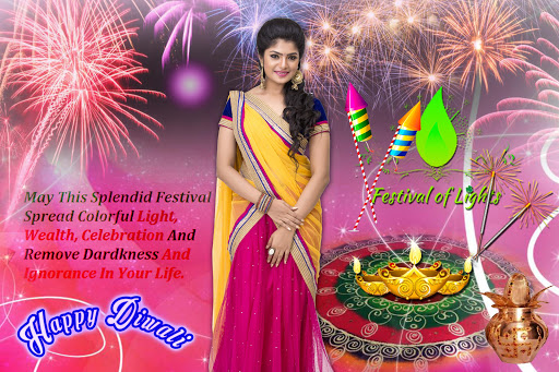 Diwali photo frame app makes your photo more beautiful and change your photo background with latest Diwali backgrounds with lightning stickers.