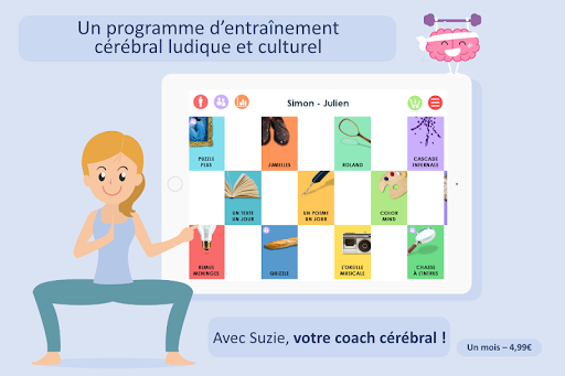 Joe, your brain trainer, improves your brain power by exercising your memory, your attention, your concentration, your mental agility, and your well-being in everyday life. Through playful but also cultural exercises, brain training is always a pleasure!