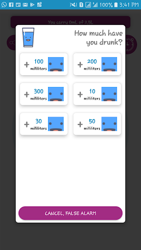 From the notifications you can omit for a few minutes your drinking time or also record that you drank a predefined amount of water.
