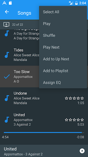 • Gesture support for next/previous, seeking, volume, item deletion, queue control. Swipe albums, artists, genres, entire playlists, into the up next queue for play, shuffle, add as next. Quickly change how swiping works