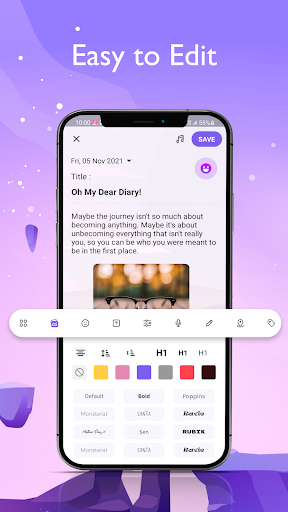 Download My Diary app to enjoy the best diary app with fully editing tool which allow you to make your diary more colorful with backgrounds, fonts, photos, videos, voices.
