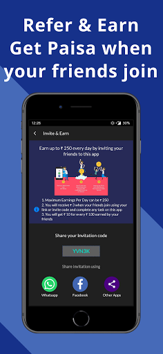 Earn Paisa app also gives a lot of rewards for inviting your friends. You can earn as much as ₹ 250 everyday for inviting your friends