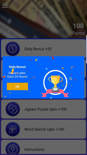 is a best rewarded app with simple tasks that are included in this app with simple steps and you can earn money easily after completion of simplest tasks i.e. spin and win, tap to earn, watch videos, jigsaw puzzle game (play and win), word search game (money games), refer a friend and earn points, and Redeem (convert points into cash), and earn money with all these.