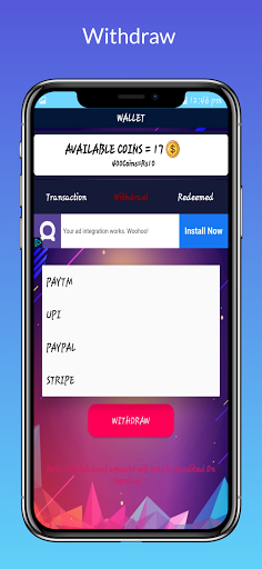 Key Features: An Money Earning App which lets you Earn paytm, phone pe, Google pay,upi,paypal Cash