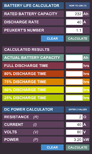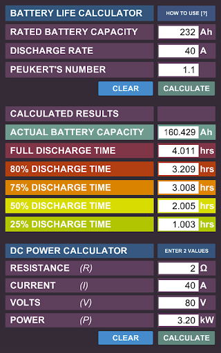The calculator also takes into consideration PEUKERT'S Law.