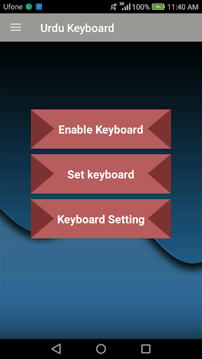 1) After installing the Urdu keyboard click on "keyboard Enable" and select Urdu keyboard.