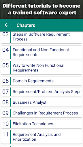 Chapters/Tutorials in Software Requirement Engineering app: