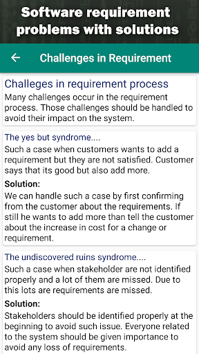 After going through all chapters, you will have good knowledge about gathering software requirements. Software requirement engineering is the most important phase in Software Development Life Cycle (SDLC). It is taught as a separate course in software engineering. So, this app will be very helpful for teachers who teach software engineering as well as students who learn software engineering. This software engineering app can help you in software engineering interview questions. To solve software engineering interview questions you need to be well prepared. This app will make you ready for all types of software engineering interview questions related to software requirements and software specification. The software app is an amazing tool for preparing for your software engineering job preparation.
