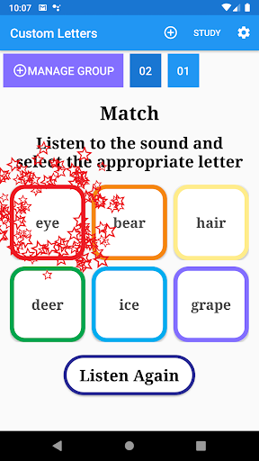 Listening and matching 'Learning Abc'