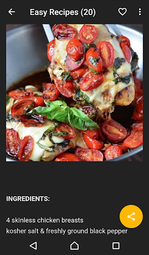 Fast Food and Easy Recipes app will show you hundreds of simple ways to cook your food.You will find all the fast food recipes you will ever need. No more buying expensive cookbooks or writing ingredients before you start cooking, with this recipe app that you all have in one place.