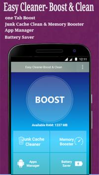 Easy Cleaner- Boost and Clean app can boost all android smartphone speed faster by 75% and save battery life by 25% when phone battery about to die. Easy Cleaner- Boost and Clean app is one of trending RAM cache cleaner tools available in google play store. This 2MB memory size app gives Boost button, Junk cache cleaner, Memory booster, App Manager and Battery Saver.