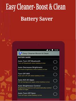 Battery Saver: Saves Battery life upto 25% automatically brings decrease brightness, turn off Wi-Fi, Bluetooth and data connection.