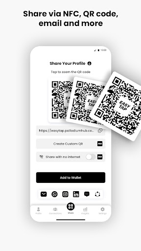 This feature makes it one of the best business card apps for professionals and business individuals. Save your EasyTap QR code to add it to your website, brochures, stickers, flyers, and digital business presentations.