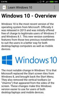 This app gives you all the indepth information on this new operating system and its procedures, right from what all hardware and other system components are required to install this OS in your system, to its advanced features and other uses. Windows 10 combines the features from its two previous versions for making it further user friendly for desktops as well as laptops and mobile devices. This is an introductory tutorial that explains all the fundamentals of Windows 10.